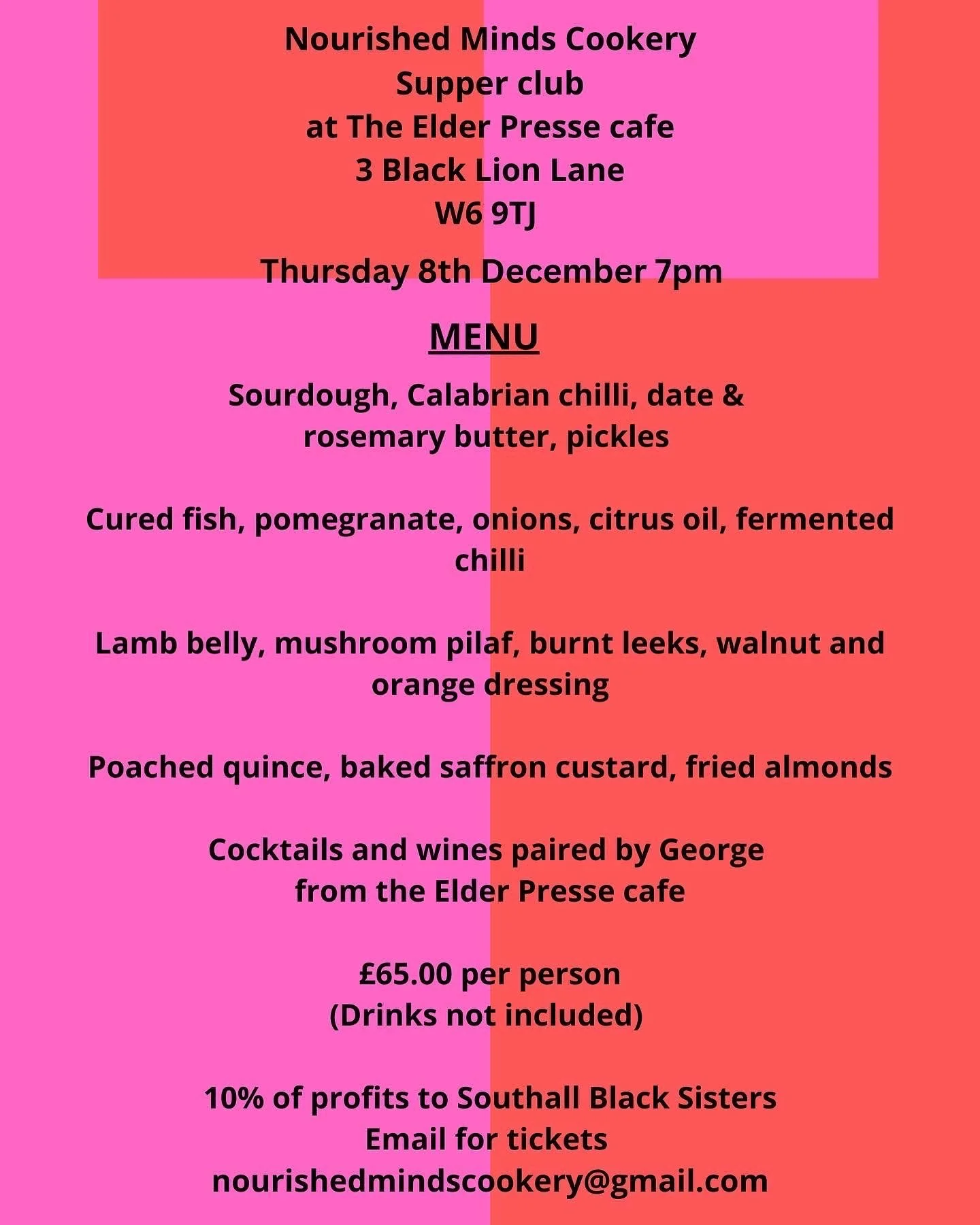We had a great night cooking for diners old and new at the delightful Elderpresse cafe in Hammersmith.